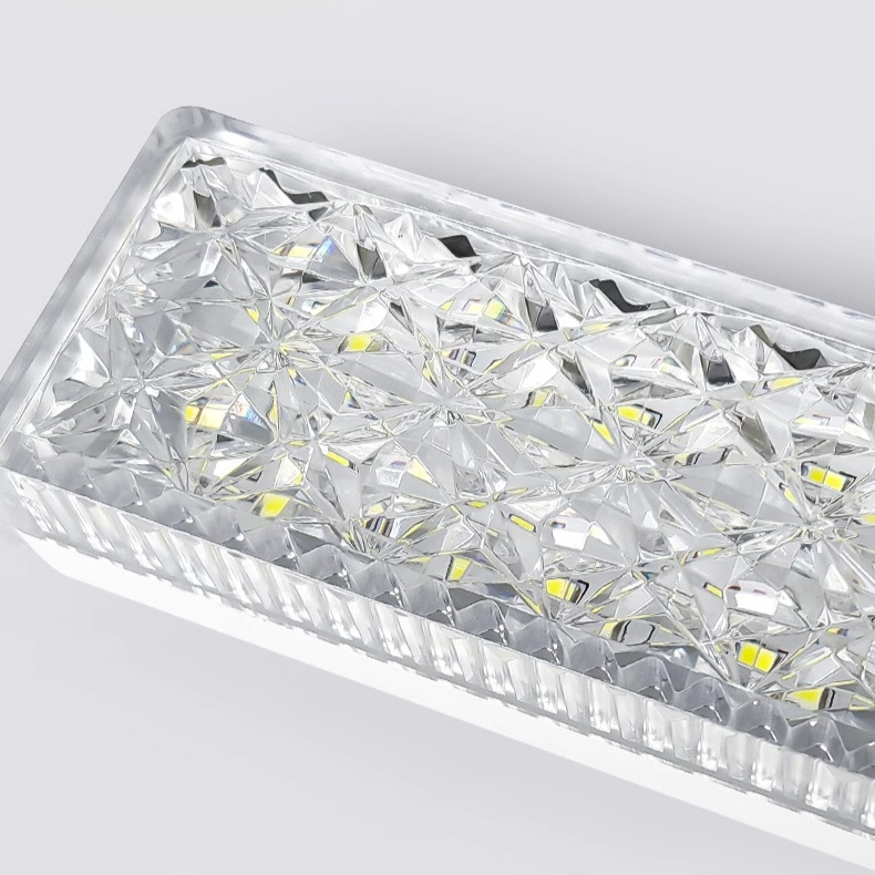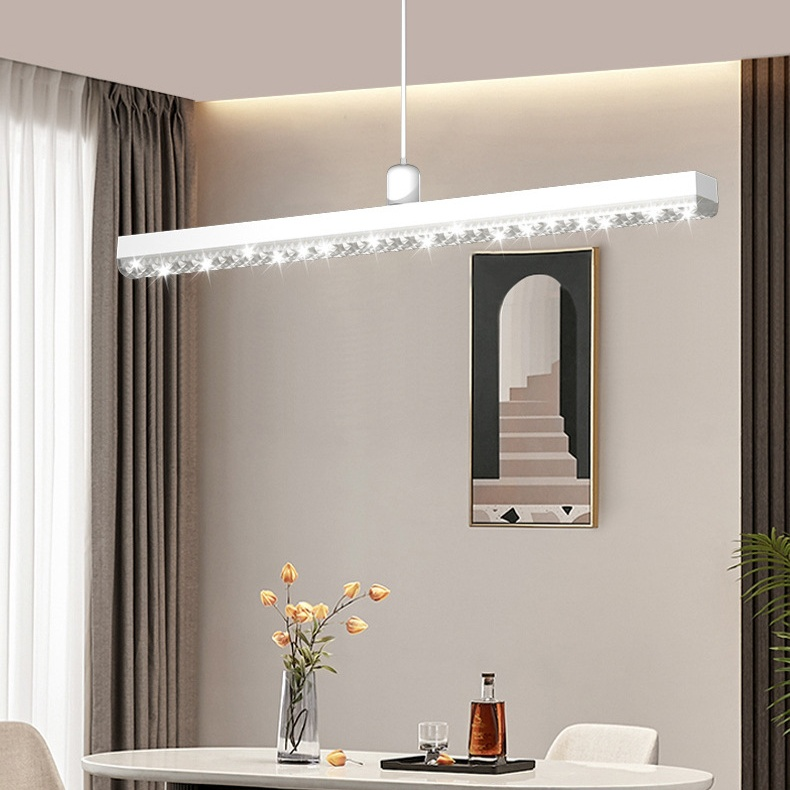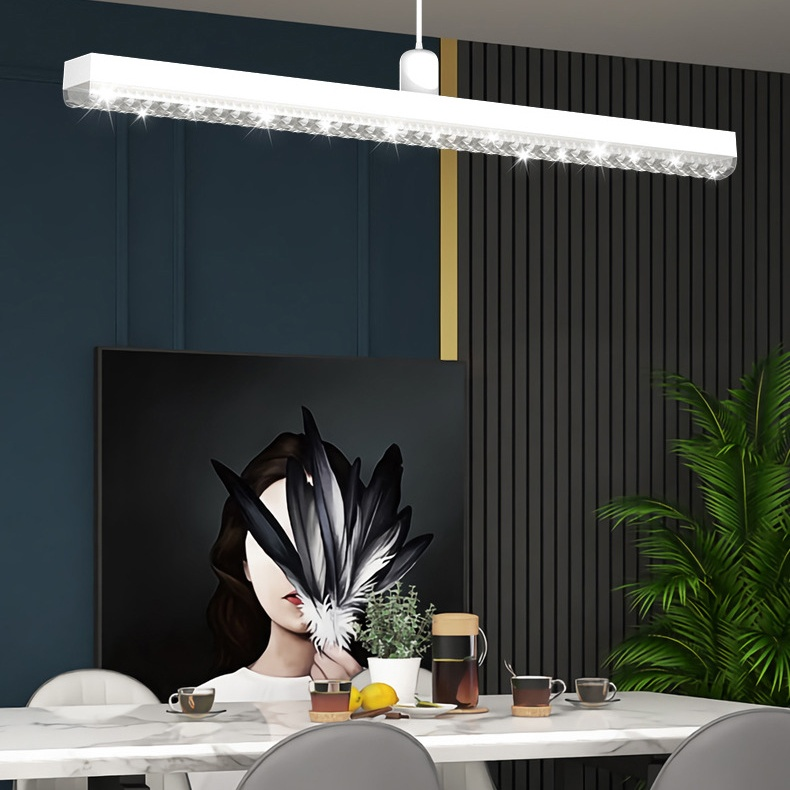 나사형 받침대가 있는 긴 스트립형 크리스탈 샹들리에, 매우 밝고 에너지 절약형 램프
